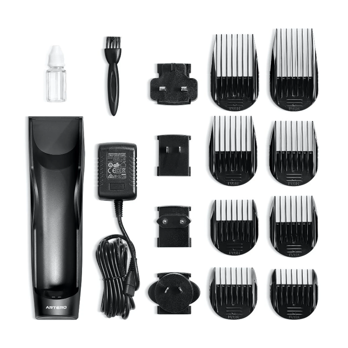 • 4 Guard Comb Attachments: 3 mm, 6 mm, 9 mm, 12 mm, 15 mm, 18 mm, 21 mm, 25 mm