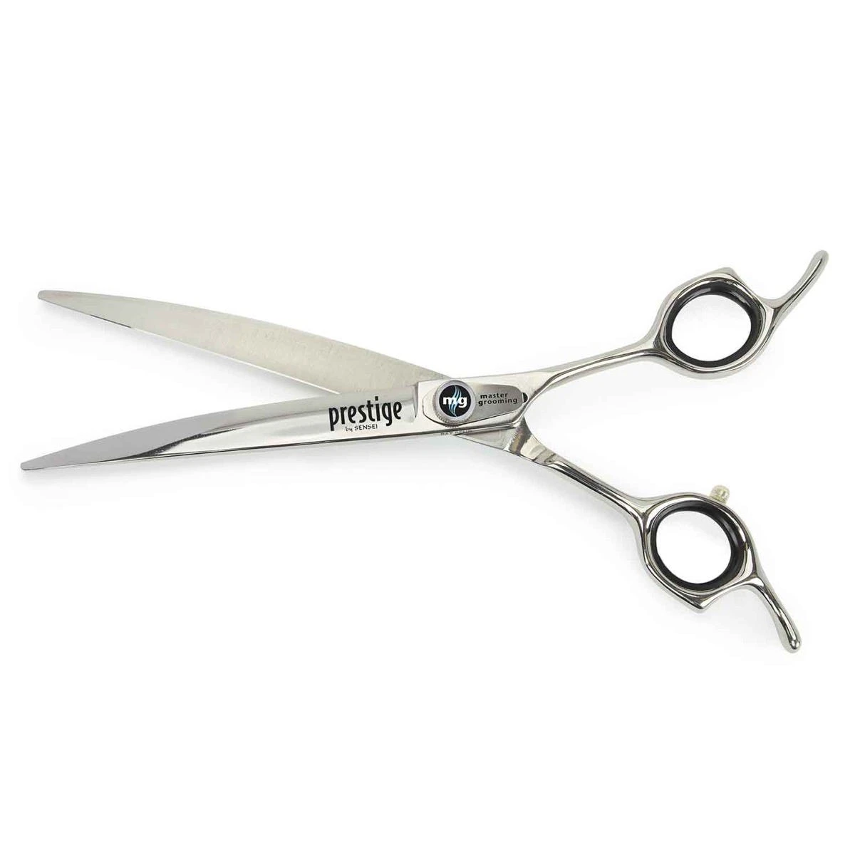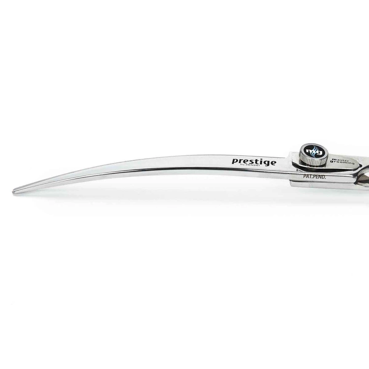 Hand-crafted by highly skilled and experienced craftspeople, Master Grooming Prestige Dog Grooming Curved Shears by Sensei are a delight to hold, and amazing to use. Groom faster and more efficiently with less fatigue. Convex Edges for the smoothest most effortless cuts. Patent-pending Zero Gravity Tension System suspends the moving blade between tow counter springs to achieve a truly weightless cutting feel. Sensei Cryo-Tempered steel is subject to extreme low temperature annealing which extends the wear resistance scientifically by 40%. They stay sharp longer than other brands!