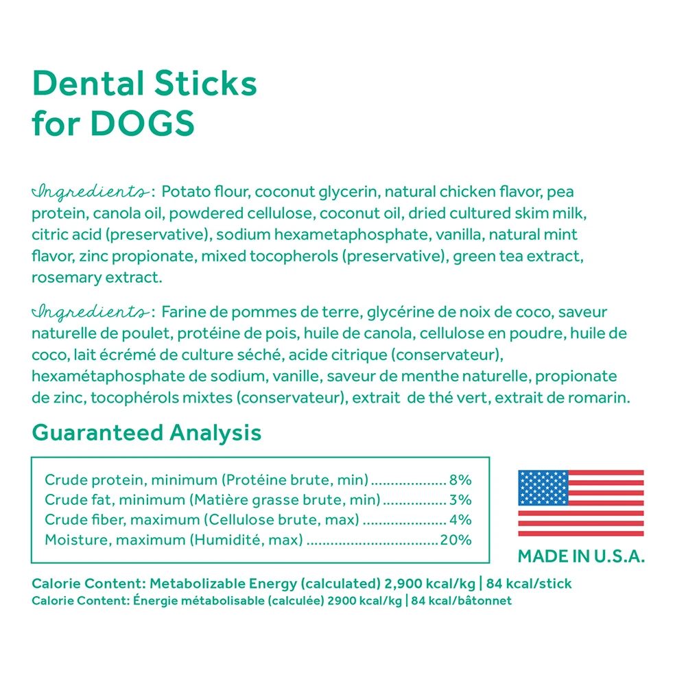 Tropiclean Fresh Breath Dental Sticks are a tasty chew treat containing sodium HMP, an ingredient clinically shown to reduce calculus formation by up to 80%. The T-shape and ridges on the Dental Sticks help to scrub away plaque as your dog chews, plus the minty flavour helps freshen your dogs breath! Containing natural chicken flavour, these chews are highly palatable.